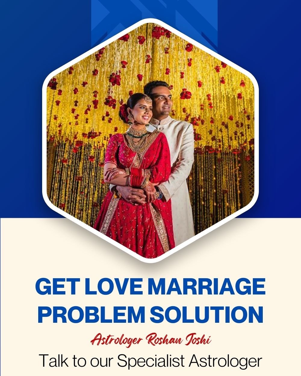 A love marriage specialist like Roshan Joshi guides couples who want to marry but face obstacles from family or society. His remedies are designed to reduce negativity, create acceptance, and bring blessings to couples starting their married life.